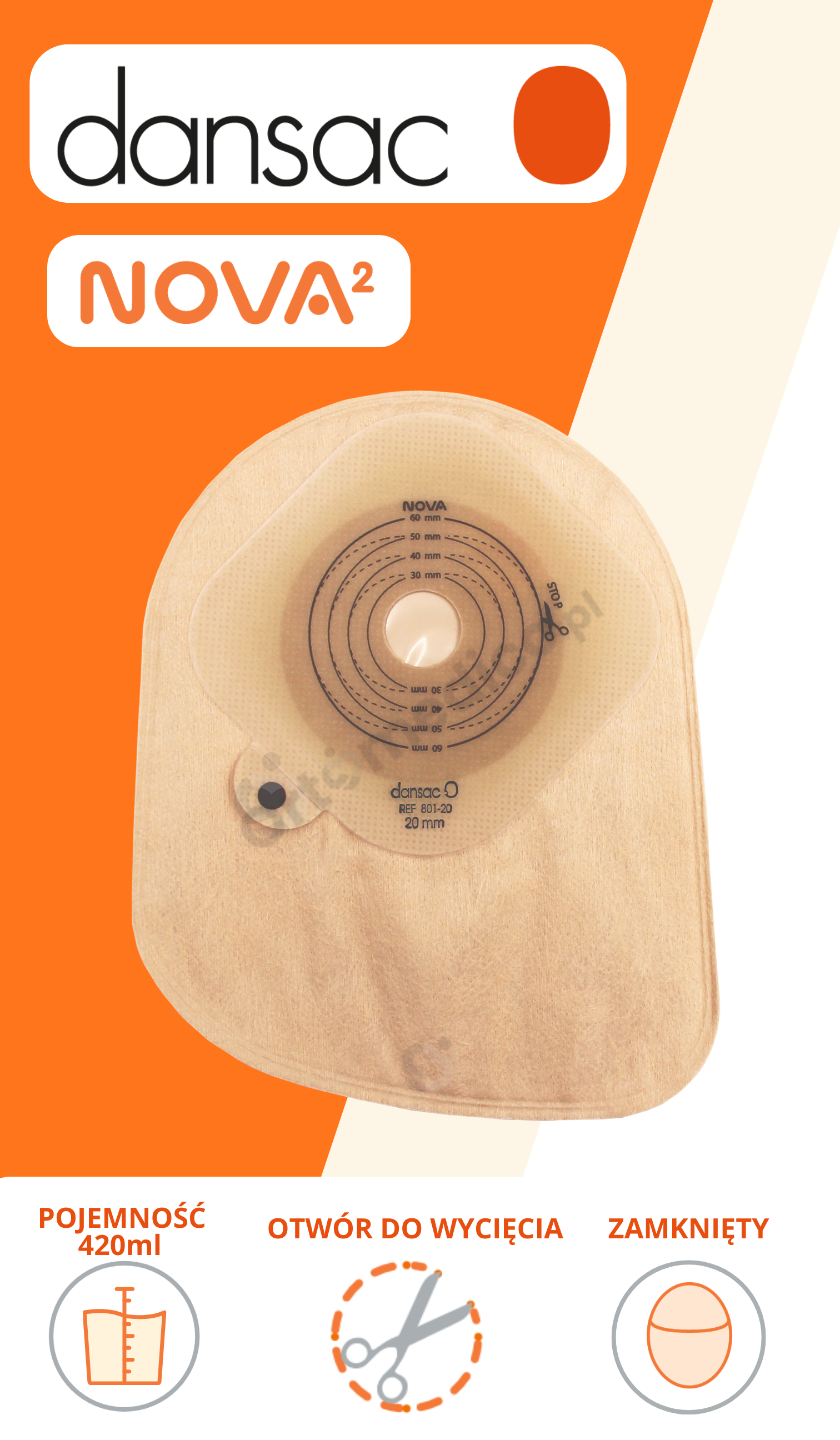 Dansac Nova1 Closed Midi 801-20 to zamknięty worek stomijny jednoczęściowy, zaprojektowany z myślą o maksymalnym komforcie i bezpieczeństwie osób z kolostomią. Dzięki zastosowaniu naturalnych, przyjaznych dla skóry materiałów i nowoczesnych technologii, worek zapewnia wysoką szczelność, skuteczną ochronę przed zapachami i pełną dyskrecję w codziennym użytkowaniu.