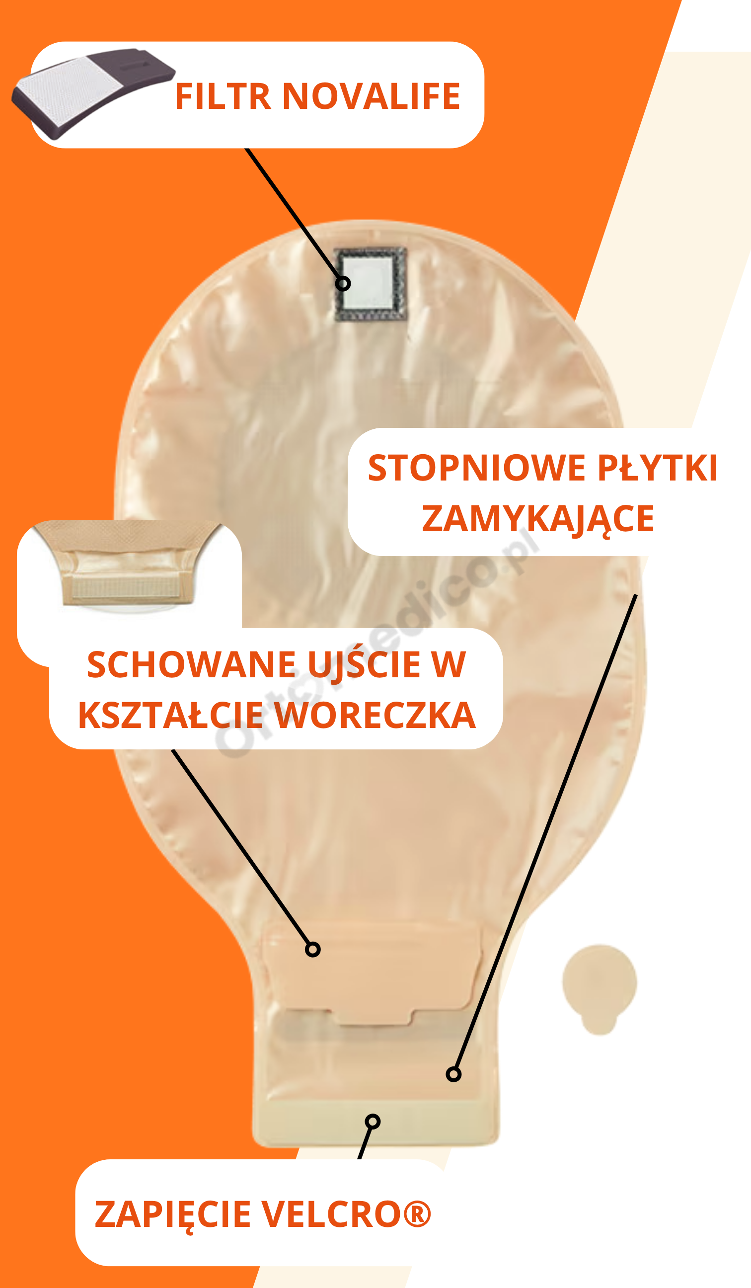 Worek stomijny Nova™ 1 FoldUp 824-15 to produkt jednoczęściowy, zaprojektowany z myślą o codziennych potrzebach osób żyjących ze stomią jelitową. Dzięki zaawansowanej budowie, innowacyjnym materiałom i wygodnemu systemowi opróżniania, zapewnia wyjątkowy komfort użytkowania, bezpieczeństwo oraz skuteczną ochronę skóry wokół stomii.