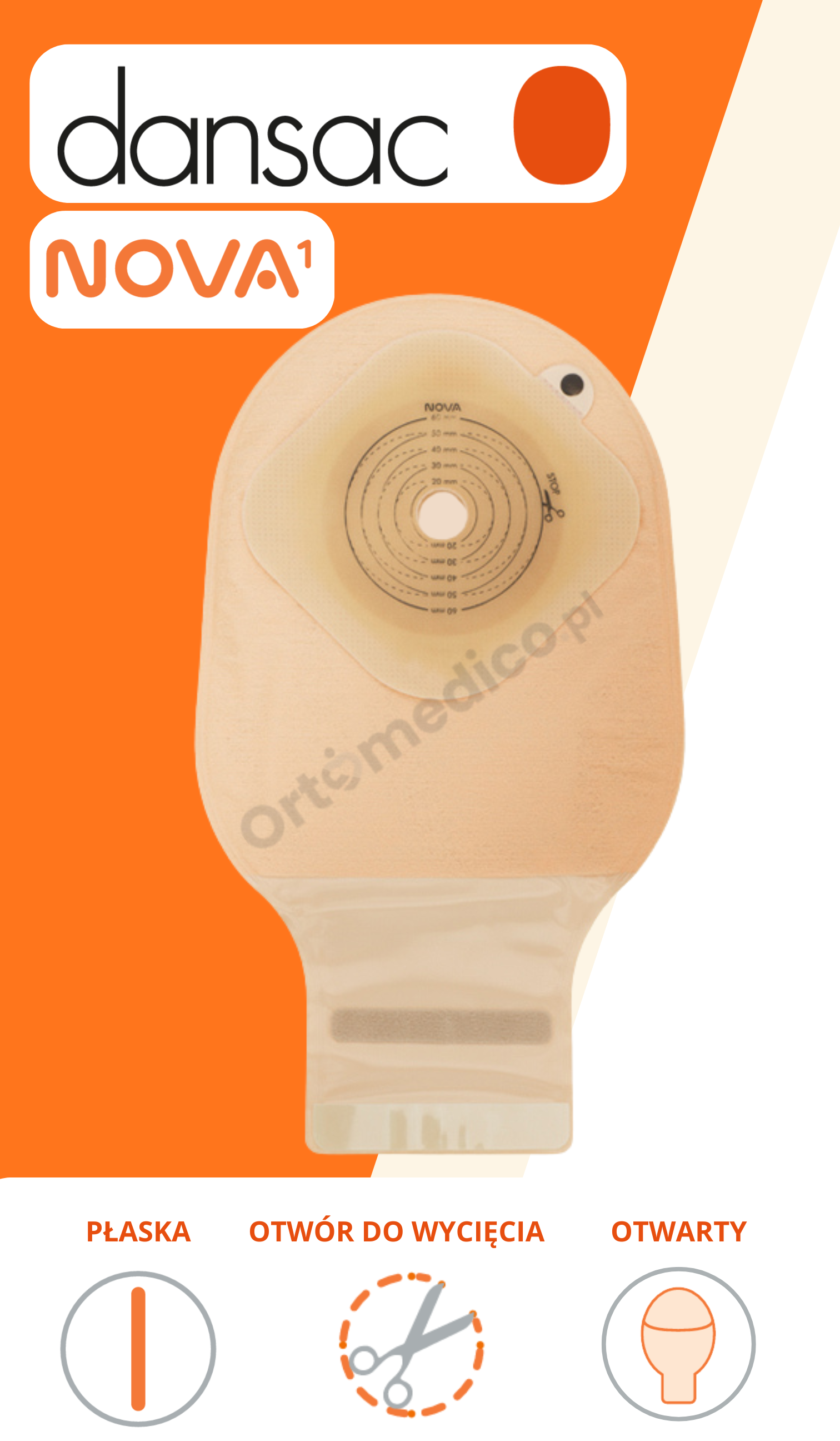- wyraźna skala umożliwia precyzyjne dopasowanie otworu do rozmiaru stomii,