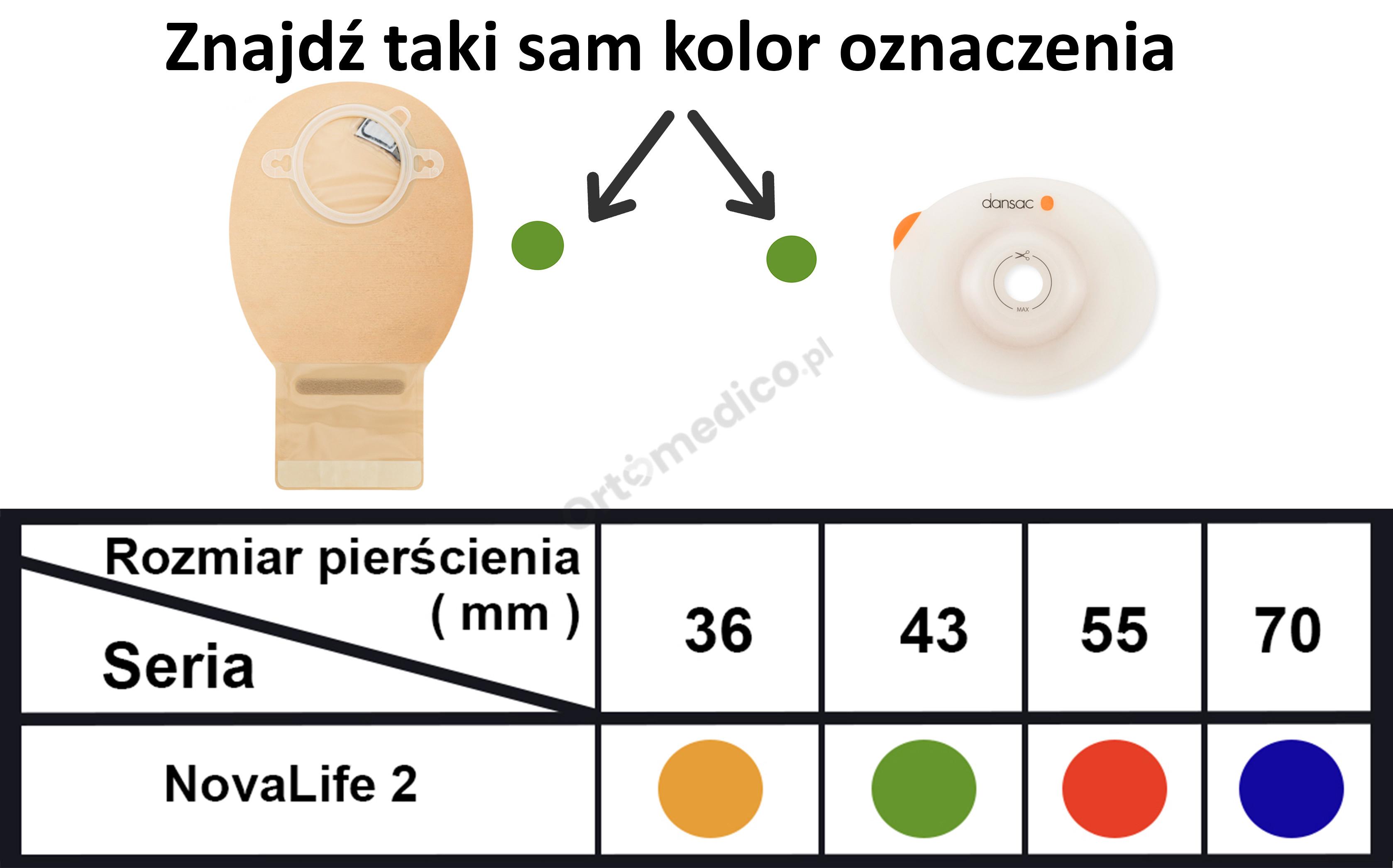 - Sprawdź kolor pierścienia – worek i płytka muszą mieć to samo oznaczenie kolorystyczne. Kolor = rozmiar pierścienia.