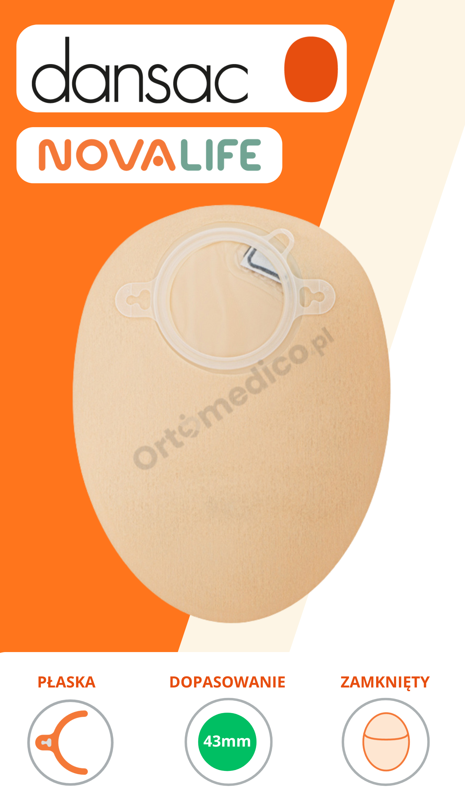 Dansac NovaLife™ 2 Closed to nowoczesny, zamknięty worek stomijny przeznaczony do stosowania w systemie dwuczęściowym NovaLife™. Model 1301-43 wyróżnia się średnim rozmiarem (MIDI), neutralnym, beżowym kolorem zapewniającym dyskrecję oraz miękkim, wodoodpornym wykończeniem, które zwiększa komfort noszenia – również w trakcie aktywności fizycznej i codziennych obowiązków.