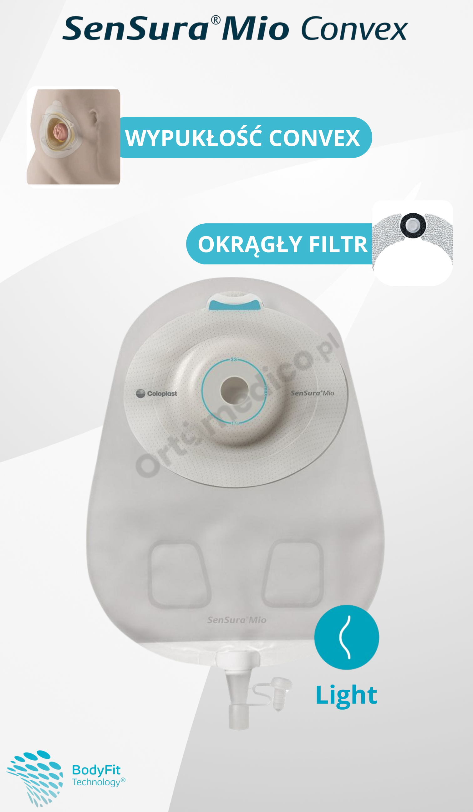 Worek SenSura Mio Convex Light wyróżnia się neutralnym szarym kolorem, który został wybrany spośród setek odcieni, aby zapewnić maksymalną dyskrecję. Dzięki temu świetnie komponuje się z każdą odzieżą – nawet białą – i sprawia, że worek jest mniej widoczny pod ubraniem.