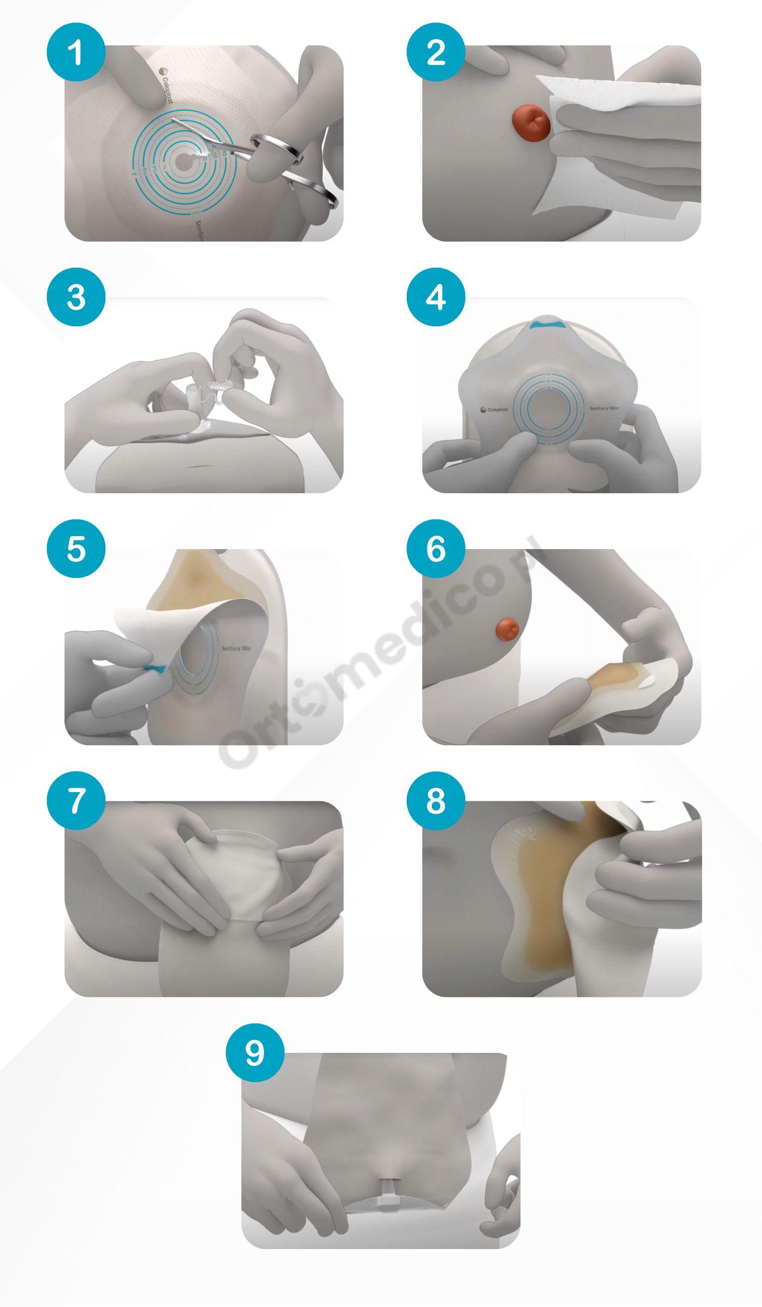 Podczas zakładania sprzętu stomijnego należy zwracać szczególną uwagę, by przylepiec dobrze przylegał do skóry, otwór nie był zbyt duży czy zbyt mały.