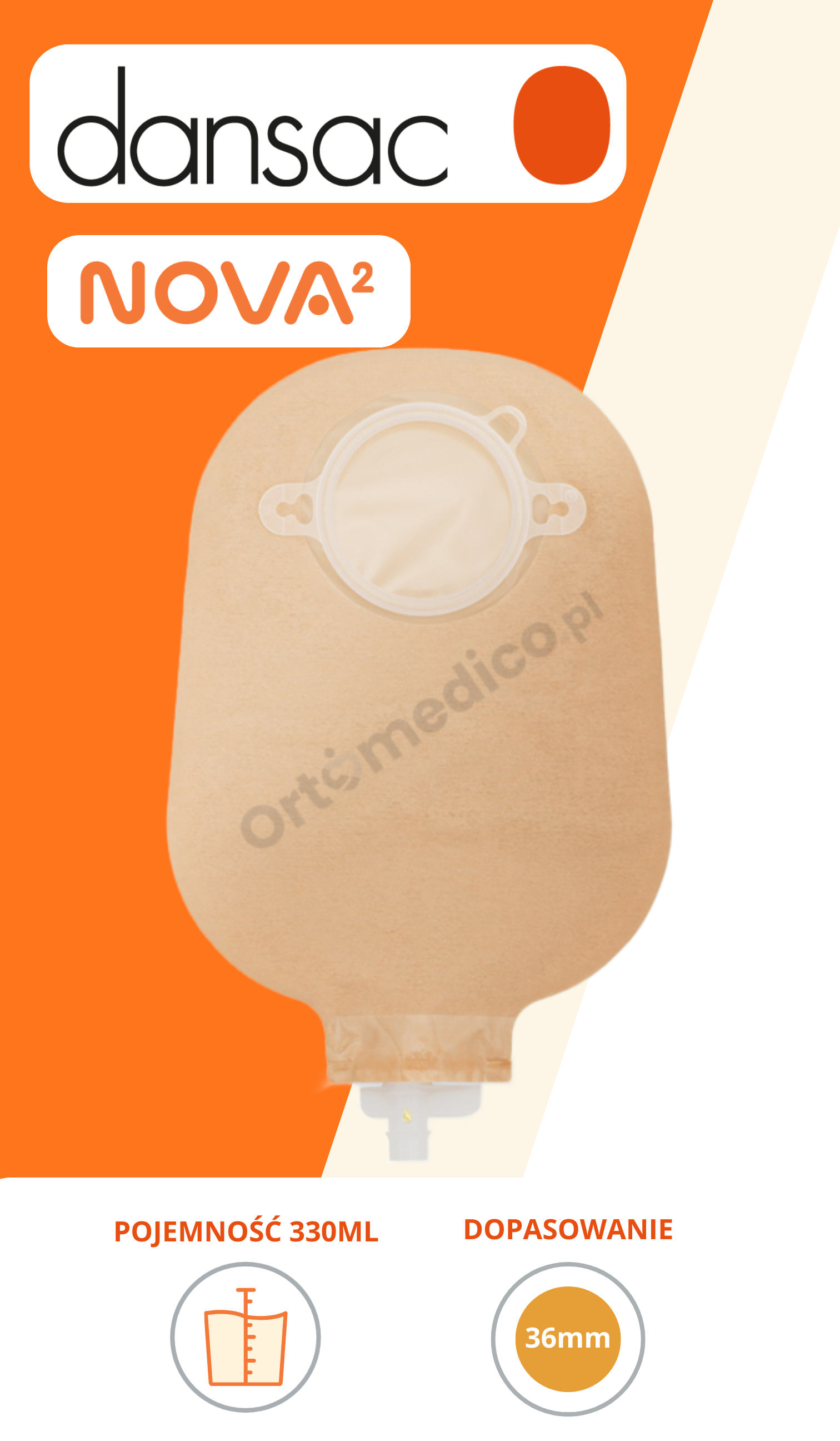 1217-36 Dansac Nova 2 Uro – worek urostomijny 36 mm, 330 ml, beżowy