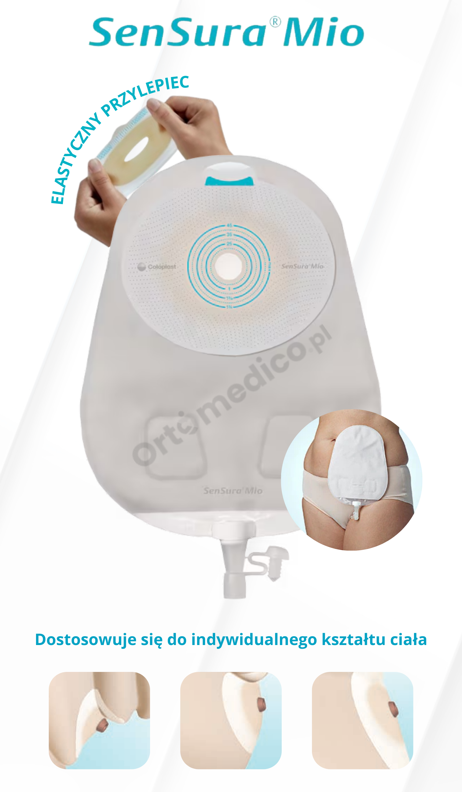 Technologia BodyFit® – elastyczny przylepiec dopasowuje się do naturalnych kształtów ciała, dzięki czemu worek nie odkleja się podczas ruchu, schylania czy uprawiania sportu.