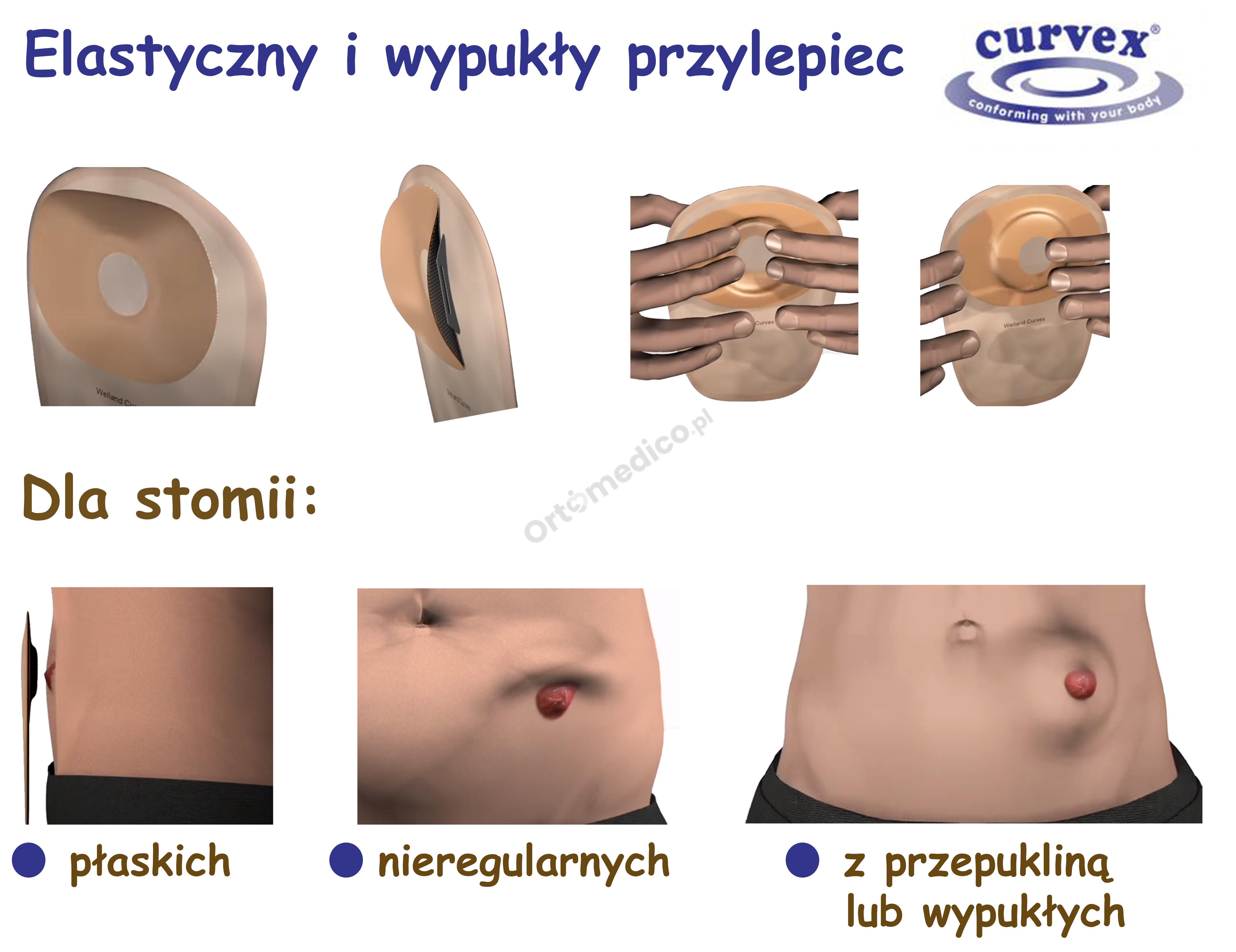 - Dla osób z przepukliną wokół stomii / przepukliną stomijną: Curvex jest idealnym rozwiązaniem dla osób zmagających się z przepuklinami okołostomijnymi, gdzie tradycyjne przylepce mogą nie zapewniać wystarczającej szczelności i stabilności.