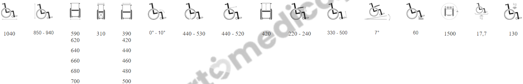 szerokość siedziska: 390,420,440,460,480,500mm
