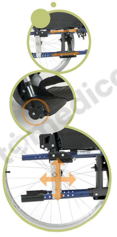 - Podnóżki powinny być ustawione w taki sposób, aby stopy były wygodnie podparte, a kolana znajdowały się w kącie prostym. Zbyt niskie podnóżki mogą powodować niewygodne zwisanie nóg, a zbyt wysokie mogą naciskać na uda, co może prowadzić do dyskomfortu i problemów z krążeniem.