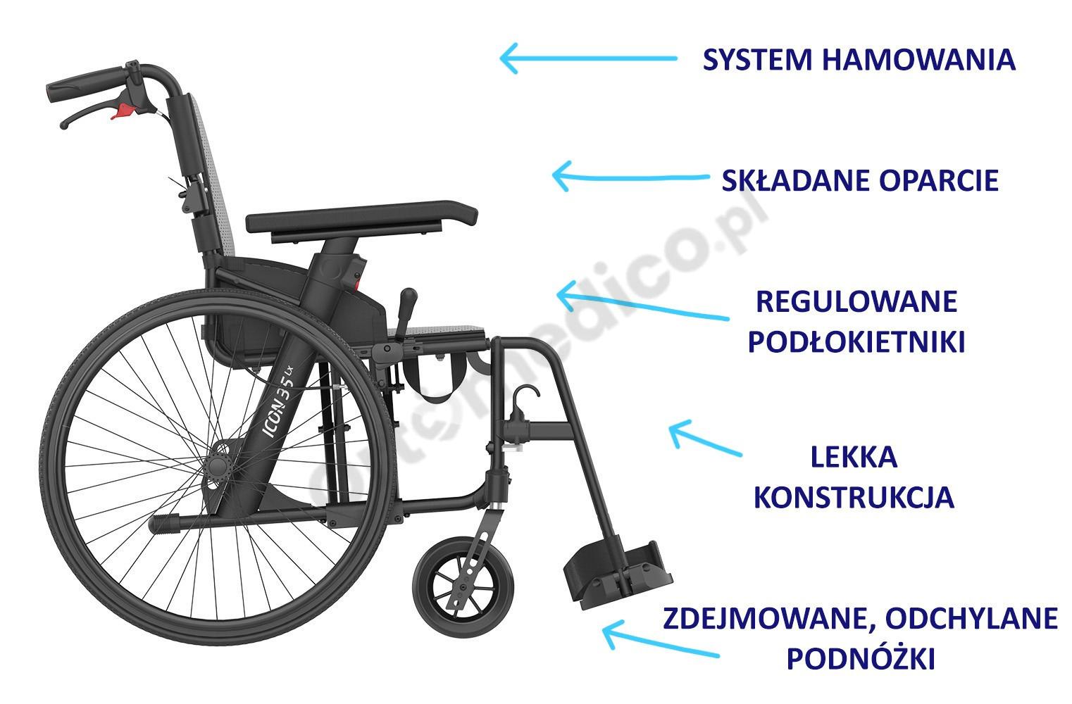 Wózek inwalidzki ICON 35 LX - wersja luksusowa Rehasense zalety produktu: