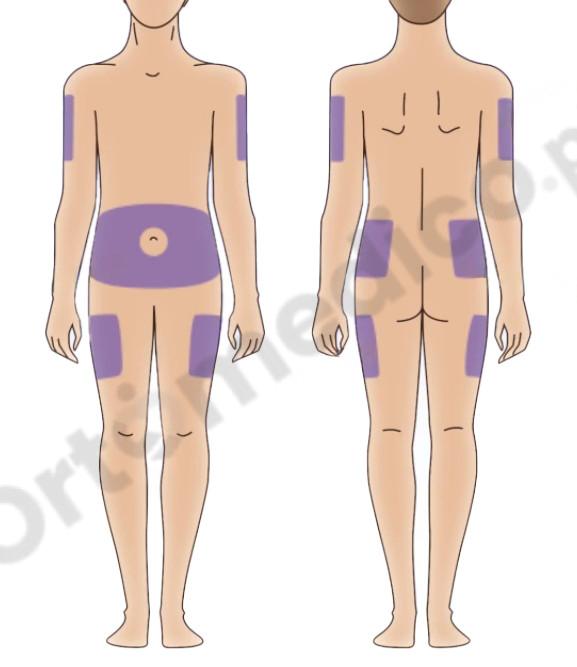 1. Wybierz zalecane miejsce wkłucia (np. brzuch, biodra, pośladki).